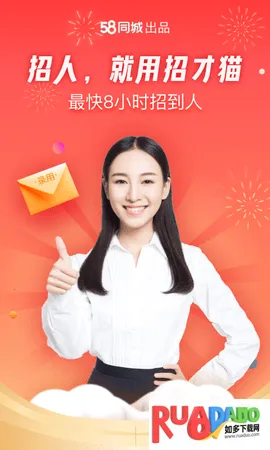 招才猫直聘是58同城旗下专为商企端打造的招聘平台,与58同城和赶集网人才资源互通。提供丰富职位,能自动匹配,支持多种招聘功能,如悬赏招人等,还有10秒快速发布职位等特色,助力企业高效招人。
