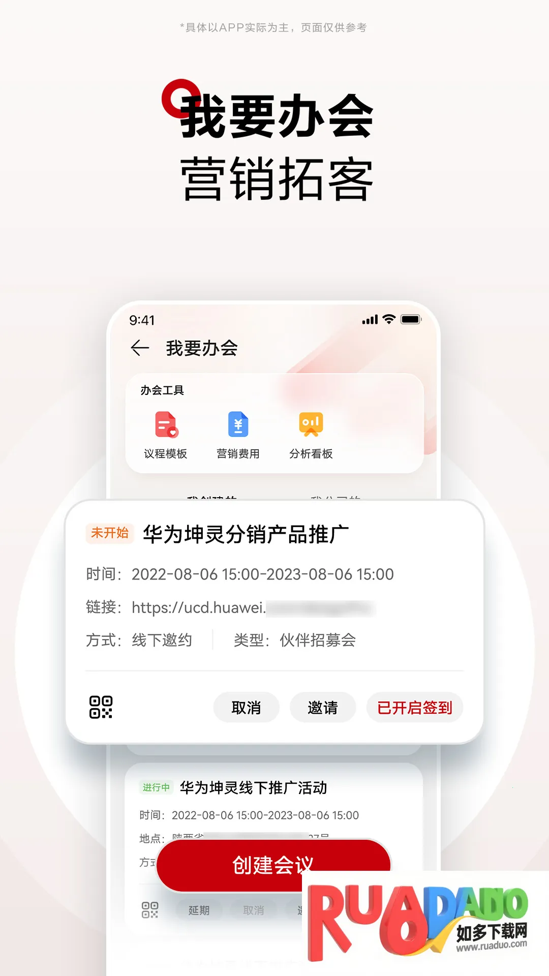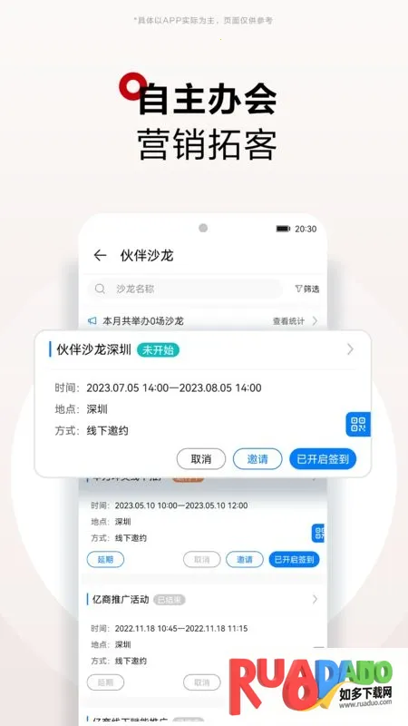 3. 能自主办会,还可通过智能营销看板洞察市场,精准拓客。
