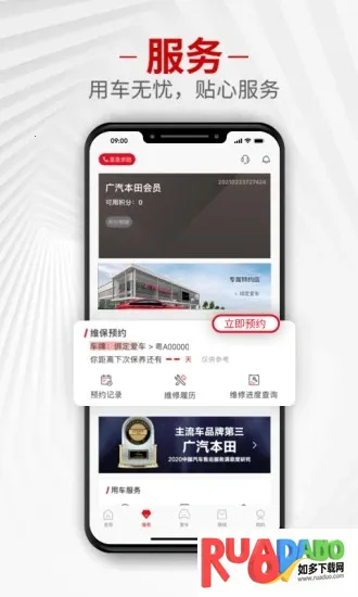 广汽本田2026官方正版APP是广汽本田为车主打造的服务平台。可实时了解车型信息、行业新闻,绑定车辆后能进行养车维护,享受专属福利、精彩活动,还有线上展厅、好物商城等功能,提供全方位车主服务。