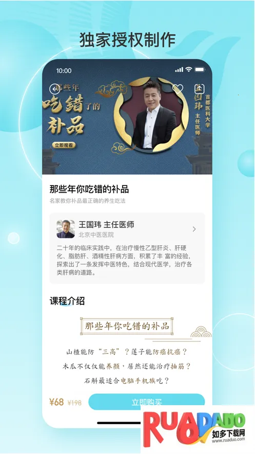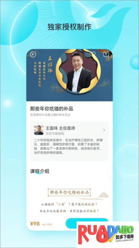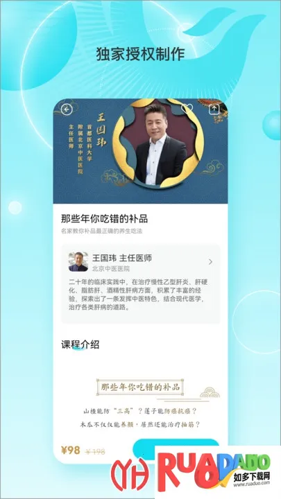 4. 独家出品健康精品课程,由100位国内知名医学专家独家授权制作。