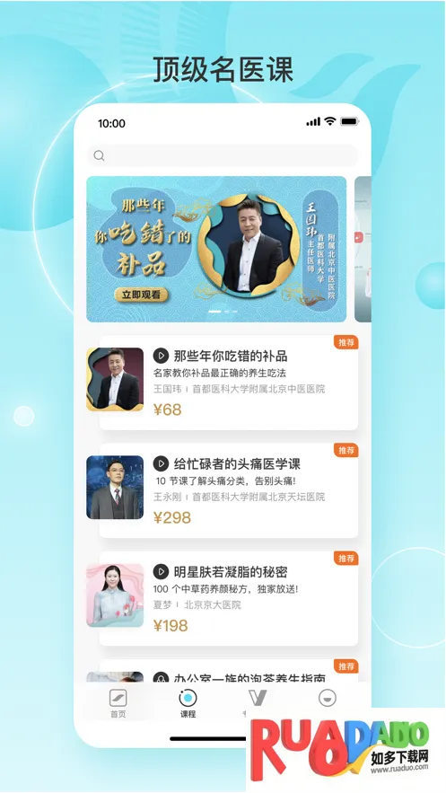 3. 独家名医课,由100位国内知名医学专家独家授权制作。