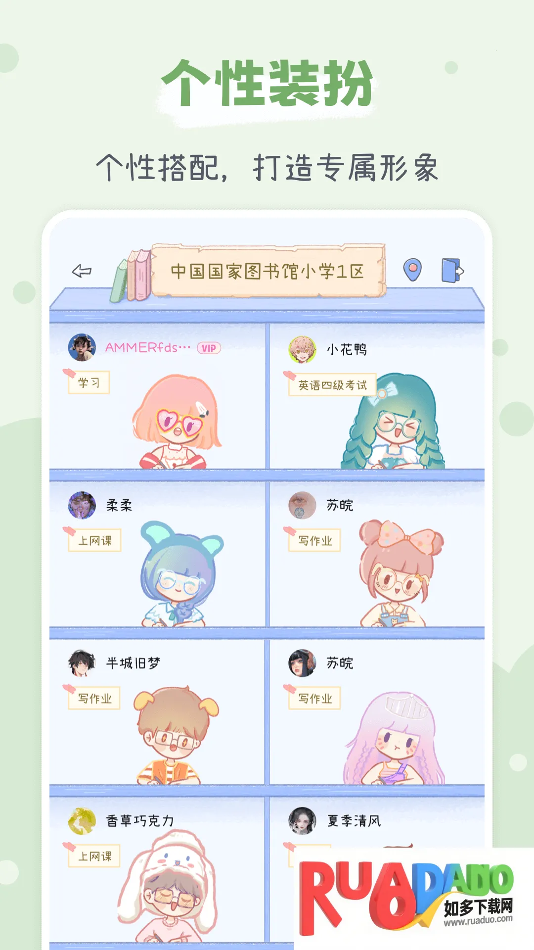 4. 自习形象自定义,云自习时可为虚拟形象更换装扮,增加趣味性,让学习过程不再单调。