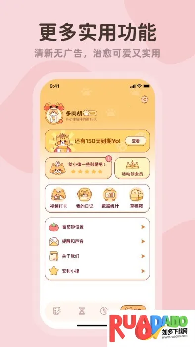 1. 治愈系视觉风格,界面清新可爱且简洁,营造轻松无压氛围,降低心理负担。