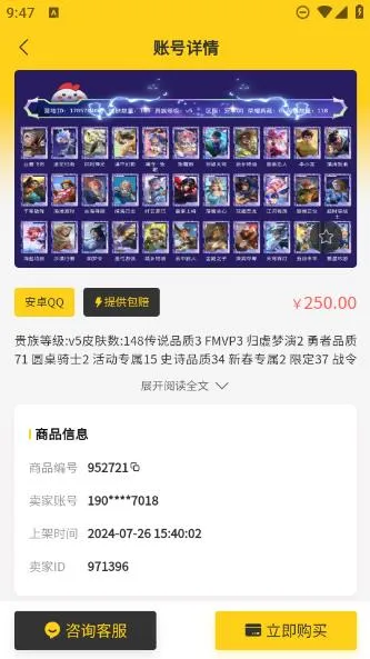1、海量账号:提供丰富的账号资源,涵盖各类热门游戏,账号品类繁多。