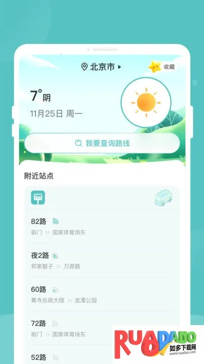 4. 输入目的地可计算详细抵达路线,首页附带气象信息助规划出行,还有多种换乘方案并记录金钱时间等信息,且信息精准,有自动提醒功能。