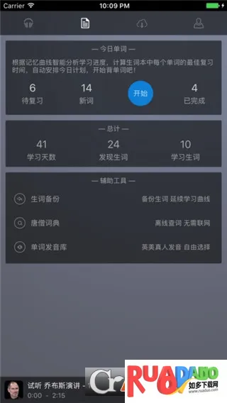 想知道“唐僧英语怎么表达”?唐僧英语app能帮到你!它是一款超棒的移动端英语学习工具。有海量原版素材,涵盖电影原声、美剧片段、演讲、新闻等,支持离线下载与多倍速播放。智能字幕系统同步中英文字幕,能滑动调节显示模式,点击单词即时翻译并加入生词本。口语训练模块提供实时语音评测,纠正发音,支持情景对话模拟与角色扮演。还能基于艾宾浩斯遗忘曲线生成复习任务,追踪学习进度、生成学习报告。特色是素材权威,多感官学习,有AI智能辅导,游戏化设计激发学习动力。在这里,你可以轻松下载各种台词和语音,提升学习效率。启动定时停播功能,能更好地规划学习时间,劳逸结合。操作也简单,关闭中文右滑就行,单句循环双击句子再点循环按钮,下载台词点击右上方“我的”按钮,再点单词发音功能和要下载的台词发音,启动定时停播点击文件后点左下方更多功能里的该功能即可。快来用唐僧英语app提升英语水平吧!