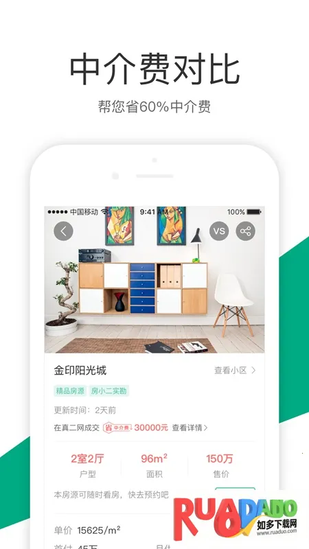 2. 省钱:全程不收取任何中介服务费,平均为每位用户节省3万元购房成本,还整合多种增值服务,降低隐性支出。