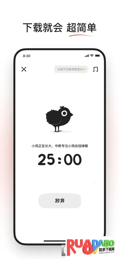 1. 它将时间管理与萌系游戏化机制融合,用小鸡生命状态反馈专注表现,让坚持不碰手机变得生动有趣。