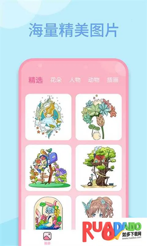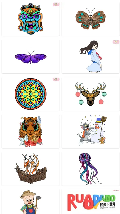1. 海量高清线稿实时更新,涵盖萌趣动物、精致插画等六大主题填色风格,满足多样审美与创作需求。