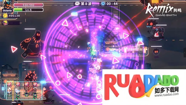 共鸣ReMix是融合肉鸽元素的音乐节奏游戏,玩家化身特色英雄,与虚空怪物对决。有多位独特英雄可招募组队,还有上百种道具,能组合出千变万化战斗流派,快来创造专属音乐风格与旋律。