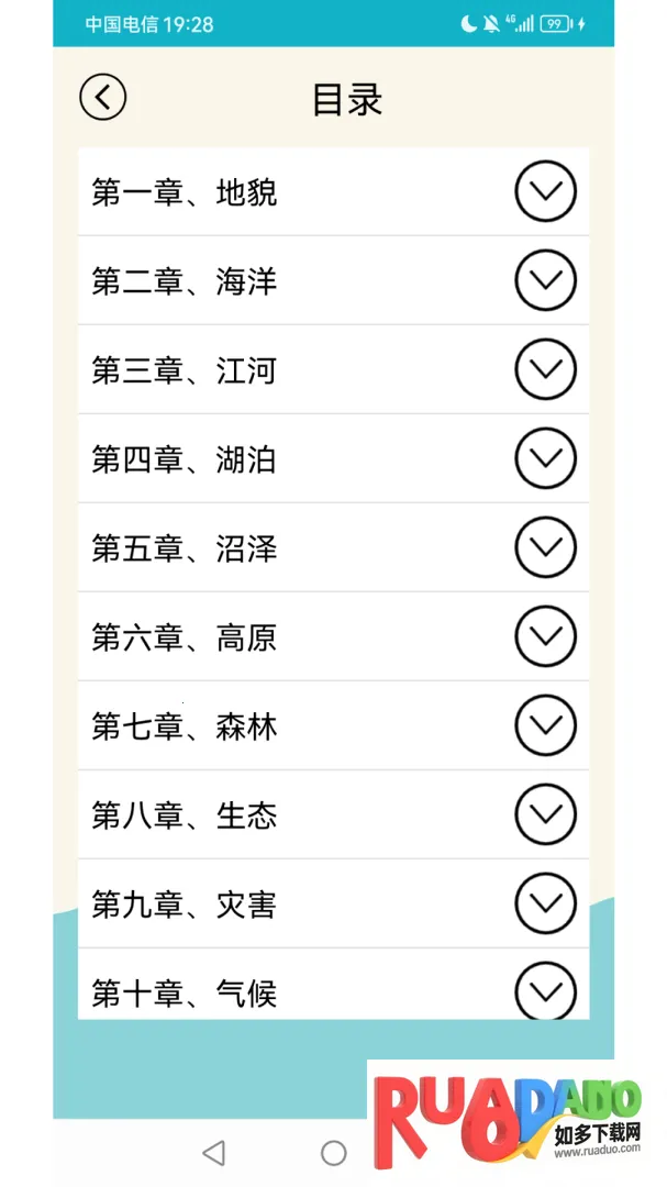 地理知识大全安卓版以极简风格呈现,涵盖初高中地理知识,有中国各省份及地貌等内容。提供多章节课程,可自由筛选,还有掌上题库、语音播放等功能,助你拓展视野、提升成绩,利用碎片时间轻松学地理。