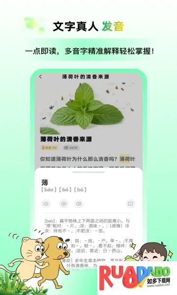 3. 点击文字即可知晓标准读音,助力孩子识字。