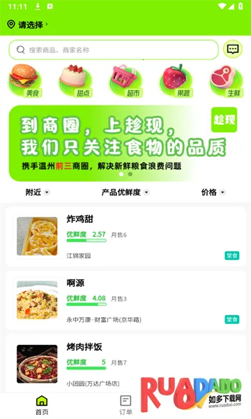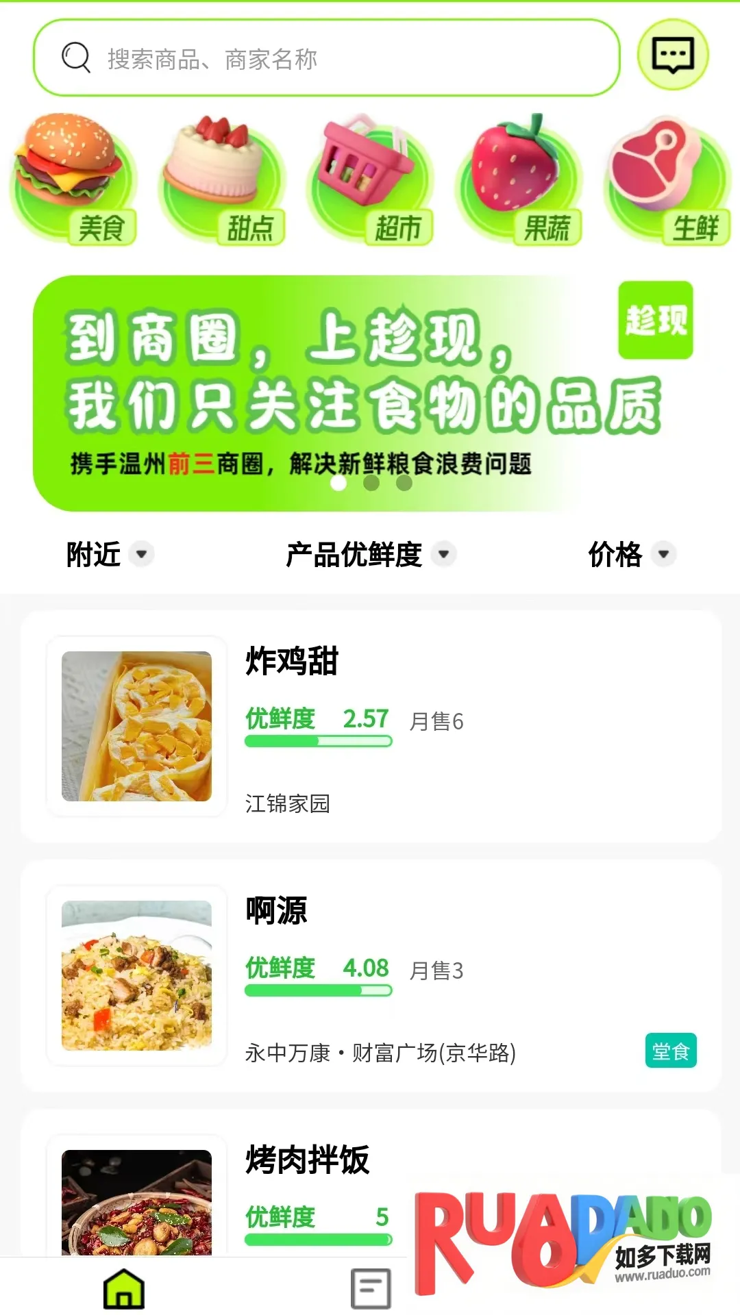 打开趁现APP,不管是点外卖还是买菜购物,都能被推荐去靠谱实在的店铺,确保商品新鲜度。