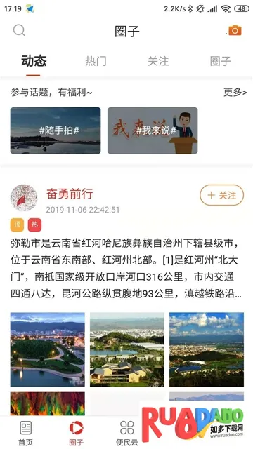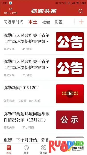 弥勒头条最新手机版是弥勒市官方融媒体客户端,提供本地新闻资讯、多种便民服务。有圈子、社会等版块,能查高考成绩等信息,还可问政、找便民服务、与领导沟通,让用户及时了解身边事,享受优质体验 。