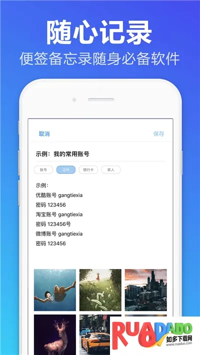 它的功能超强大!支持插入本地照片和拍照,能图文混排,一键应用笔记模板,大大提高记录效率。还支持多端同步,手机等多种设备和平台间无缝同步笔记、日记与备忘录,知识信息永久保存,随时随地都能查看,换手机也能用手机号码登录。另外,它有加密区公开区功能,语音输入快速准确,单个条目能设置闹钟提醒。和团队共享笔记、笔记本也很方便,工作群聊能围绕笔记讨论推进项目。有了它,能帮你轻松简化工作、学习与生活,一站式完成知识信息收集备份、高效记录分享等,赶紧来下载体验吧!
