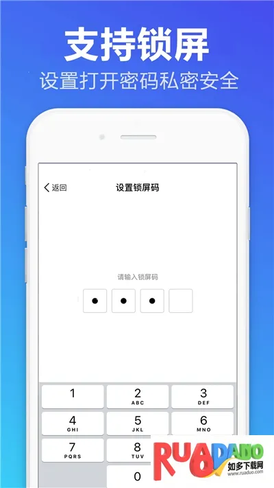 1. 支持锁屏密码设置,更加私密安全,密码忘记时可通过手机号码重置。
