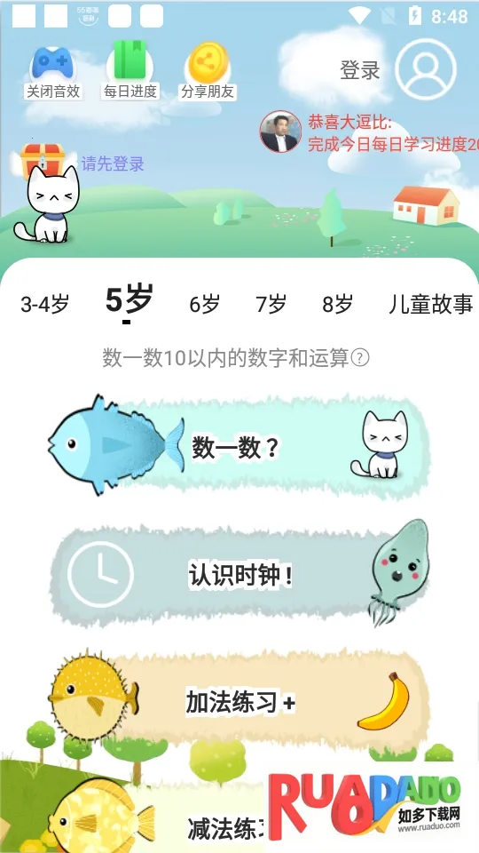3. 学习专区分类清晰直观,涵盖认一认数一数比一比算一算等核心启蒙内容。