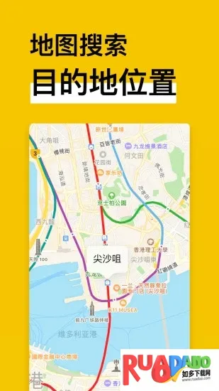 2. 支持模糊搜索,可轻松获取当前最近的地铁站点或是直接搜索目的地,还提供起点和终点如何抵达地铁站点的交通建议。
