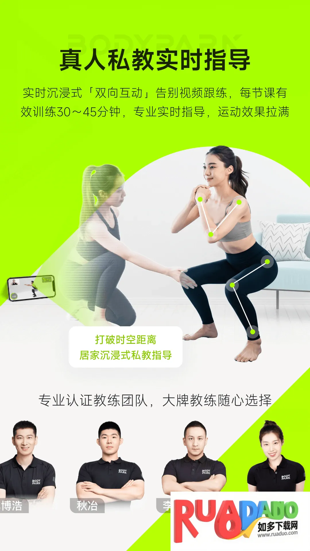 2. 真人私教,实时双向互动,教练看得清且看得细,学员练得好且不受伤