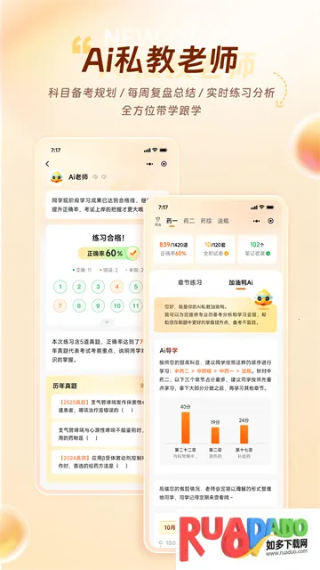 很多准备考试的朋友想知道鸭题库和润德押题哪个准。鸭题库是一款超棒的职业考试学习软件。它有国内海量题库课程视频,覆盖资格、会计、学历、计算机、外语、工程、医学等数十个领域。能利用大数据分析帮考生轻松通过考试。这里习题丰富,能大幅提升学习效率,还有许多名师在线答疑解惑。软件特色多多,比如超级会员可免费看习题讲解,章节练习能分章分节记考点,智能出题让答案与解析清晰明了,我的练习可反复练题纠正错题强化记忆,名师精讲结合高清视频与文章内容,名师直播由行业知名讲师教学,大数据题库能实时检测做题数据,学习报告全方位检测学习情况,布盯教学可协同打卡学习,晓得老师能三分钟内解答疑问。有了鸭题库,随时随地都能安心备考,提高学习效率,快速拿证。