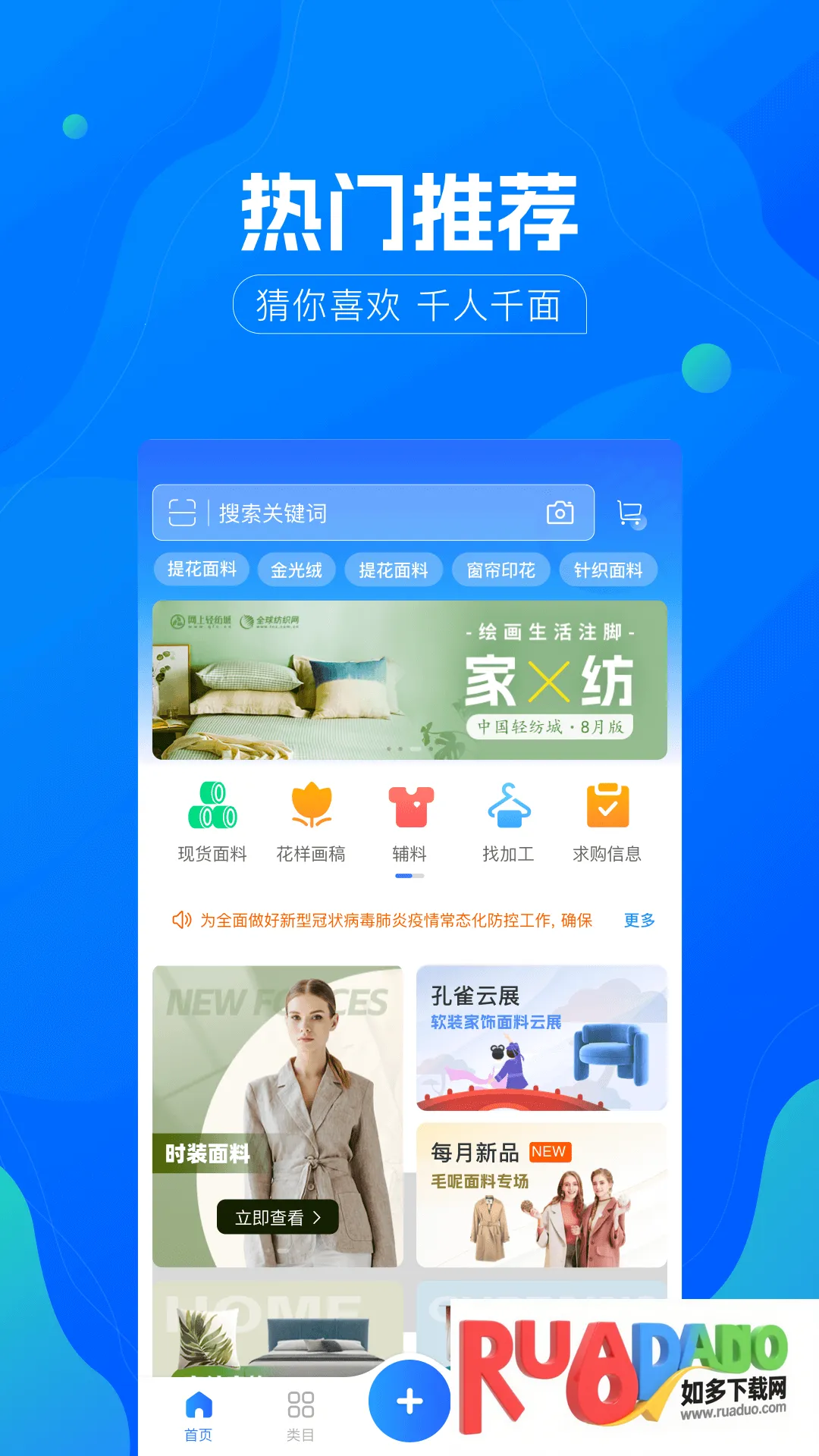 4. 频道改版,整合多个频道,功能更完善;底部导航栏新增轻纺城一栏;搜索栏改版,可管理搜索记录;增加产品浏览记录功能。