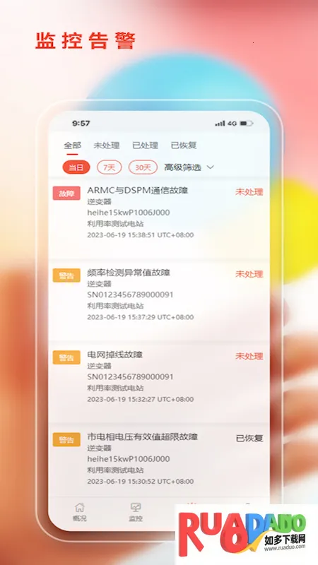 3. 异常报警监测到异常能及时接收系统报警提醒,依信息处理问题。
