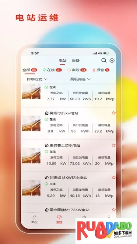 1. 实时数据监控,随时查看电站运行指标,如发电量、负载情况和电压等。
