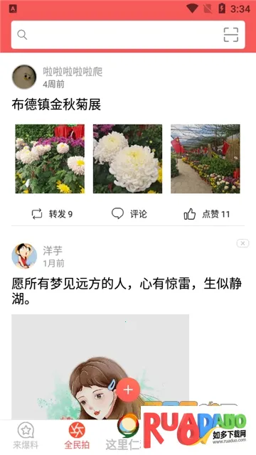 3. 群众社交促进交流互动,能分享生活动态,全民拍丰富社区内容。