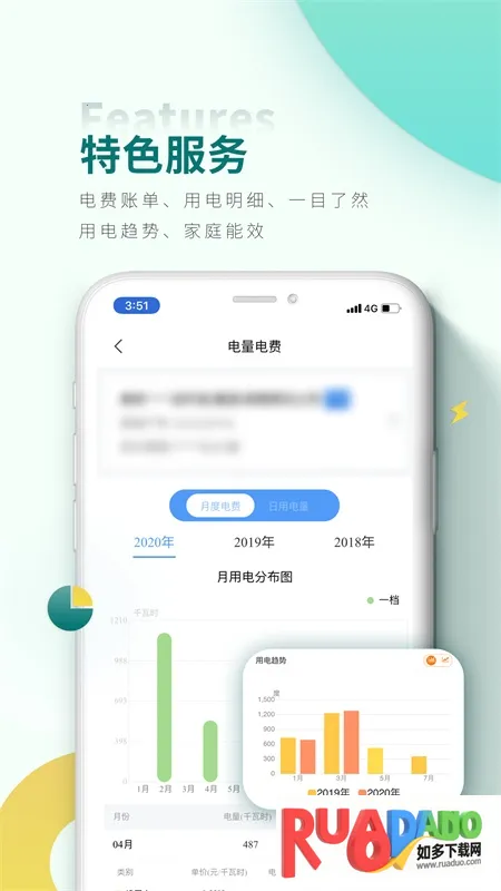 4. 展示用户近3年部分地区少于3年的用电总量及明细,支持查询三年内月用电量、电费账单、每日用电量等,方便用户全面了解用电情况。