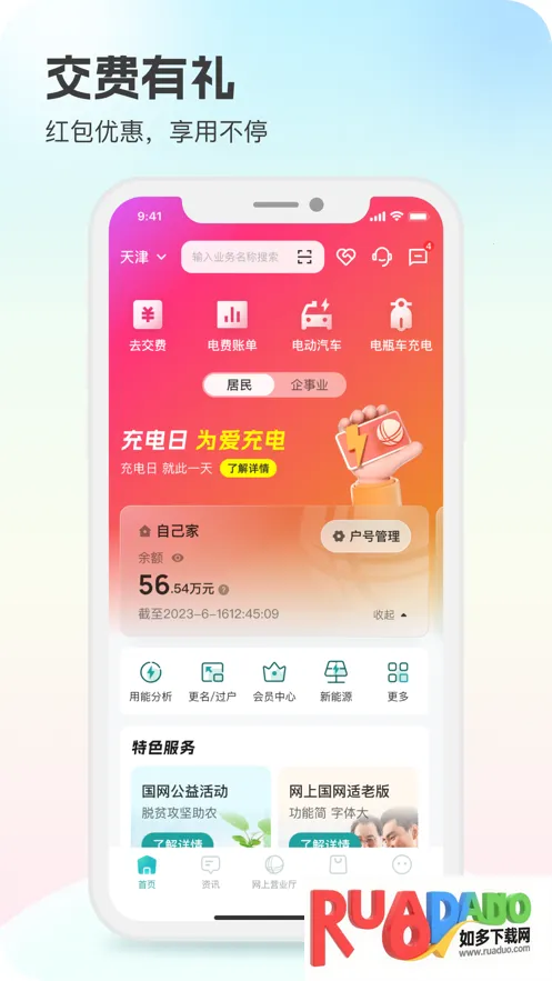 1. 提供一站式用电功能服务,实现跨领域线上及线下业务一网通办,涵盖账户查询、充值缴费、业务办理、信息订阅、营业网点等多项实用功能。