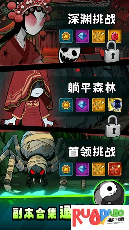2. 副本合集通关挑战:深渊挑战、躺平森林、首领挑战等多模式轮番上阵,节奏紧凑奖励明确,适合碎片时间连刷。