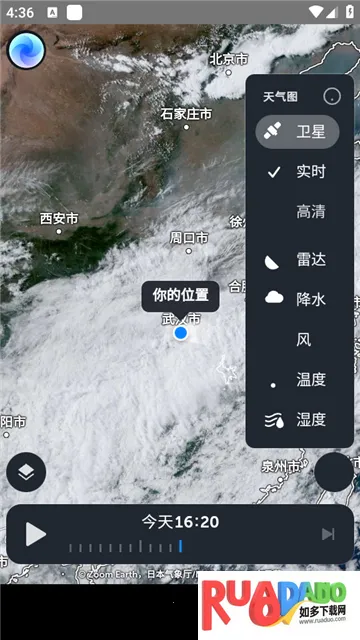 3. 提供多种地图视图和图层选择,如卫星地图等,获取全面天气信息。