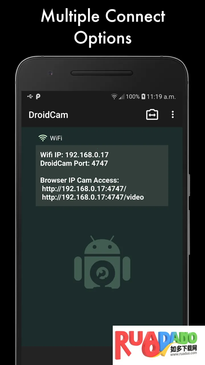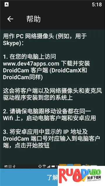 DroidCam pro破解版可将安卓手机变无线摄像头,支持连电脑,能拍摄、调整摄像头,还能视频语言通话。软件界面简洁,功能免费,操作易上手,有多种连接方式,可调整画面参数,满足远程视频等需求 。