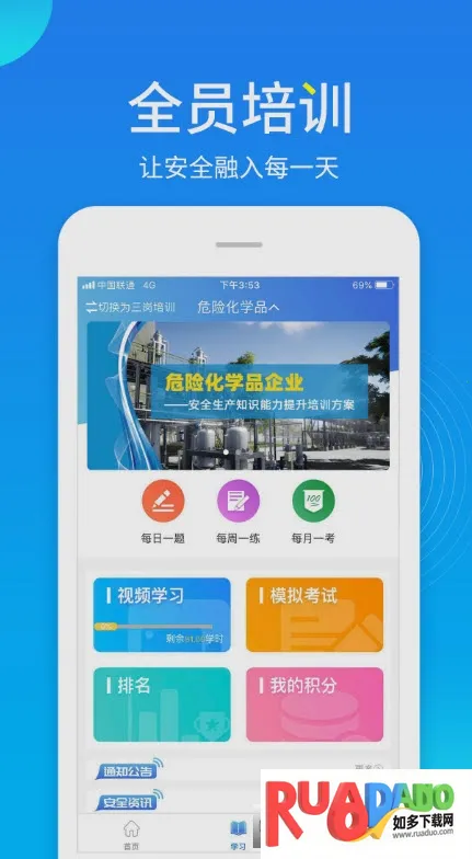 4. 拥有多样的学习与考核方式,如线上全员安全应急培训、技能提升培训,还有每日一题、每周一练、每月一考等,全方位提高安全意识。