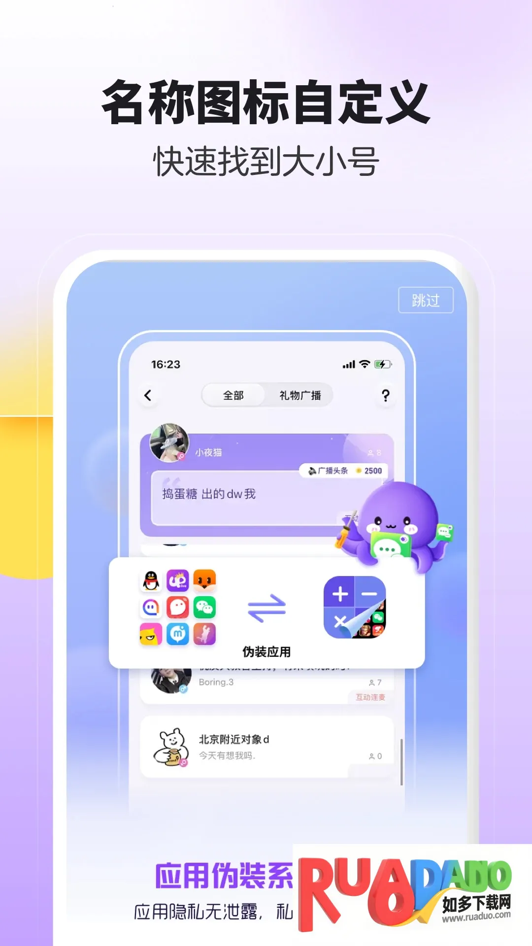 3、设有自定义密码锁和图标伪装,保护隐私,消息接收灵敏,各分身独立运行不延迟。