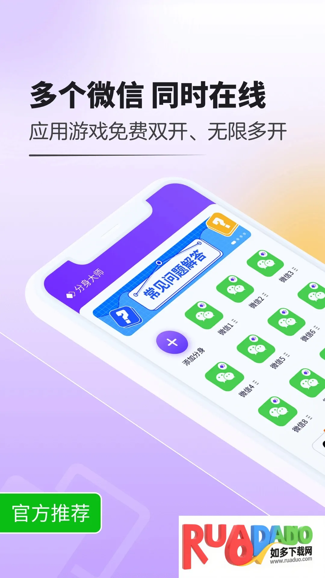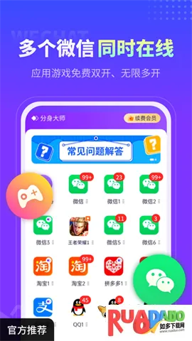 如果你想知道分身大师双开怎么弄,那可太简单啦!分身大师双开软件超实用,能帮咱解决不少问题。不管是微信、QQ,还是游戏购物平台,它都能轻松实现多开。有了它,多号党或者想把工作与娱乐分开的小伙伴就有福啦。