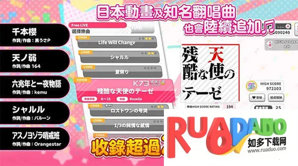 2、在指尖跃动间挑战数百首J-POP动漫金曲与原创热歌,感受独特节奏玩法。
