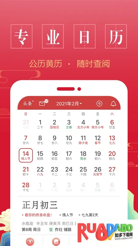 1、深度融合传统历法文化与现代生活需求,操作零门槛,信息高密度。