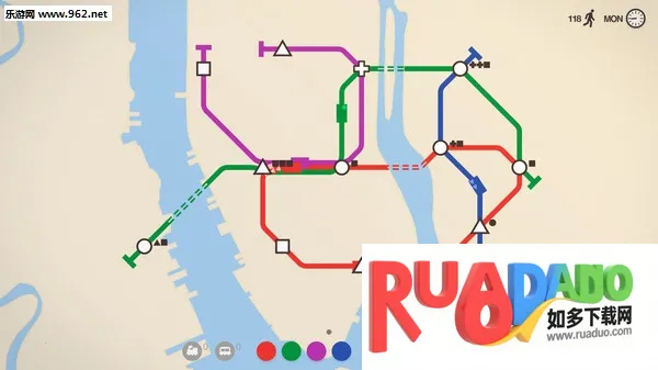 2、每一张地图都可当成一个关卡,通关条件是地铁网络完美运行且无乘客滞留。