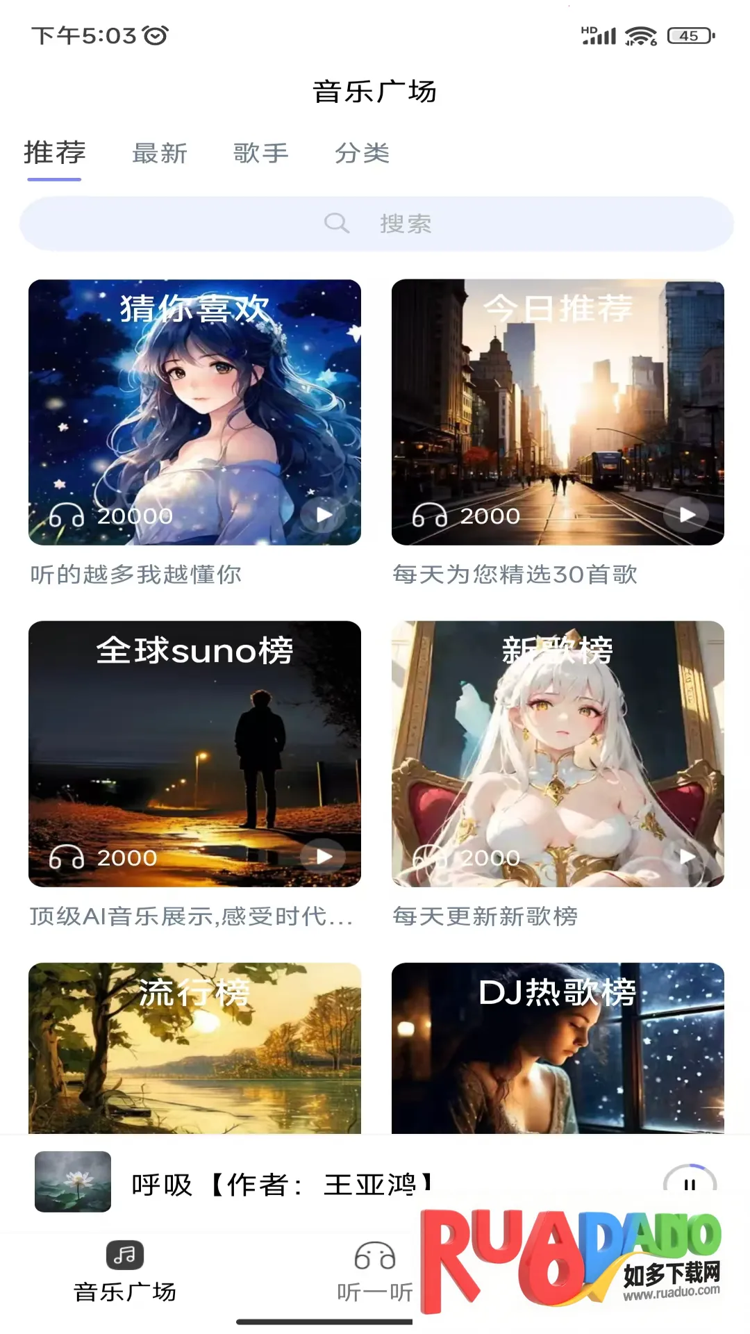 酷你AI音乐最新手机版是一款能自由听歌写歌的app。有便捷写歌工具,可借助AI灵活创作各种歌曲、编写曲谱。能欣赏他人作品获灵感,一键创作超方便,还提供丰富音乐资源,免费听歌,功能强大且亮点众多。