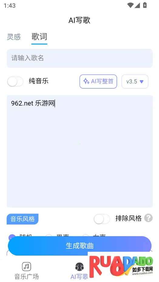 2. 能使用 AI 功能撰写整首歌曲,快速生成符合需求的歌词。