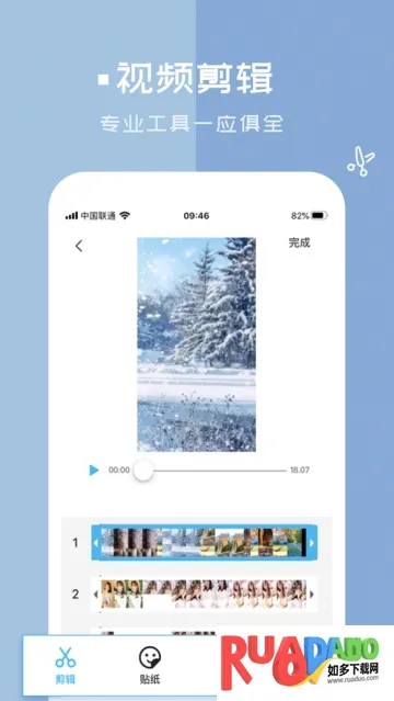 4. 操作简单,能进行视频拼接、添加字幕、贴纸等,还可修剪旋转倒放等。