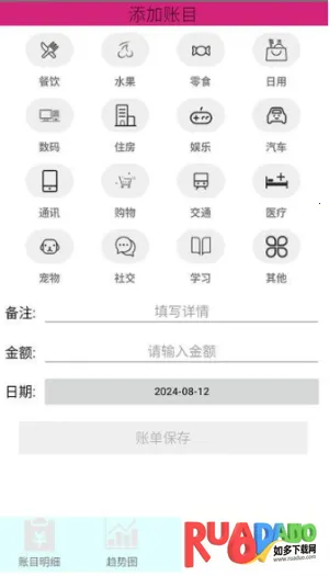 踏雪手账安卓版是便捷日常记账软件,联网或离线均可使用。操作简单,能快速记录消费,支持分类账单导出。还有消费趋势分析、数据安全保障、趋势预警及记账提醒等功能,适用于日常、家庭及生意记账。