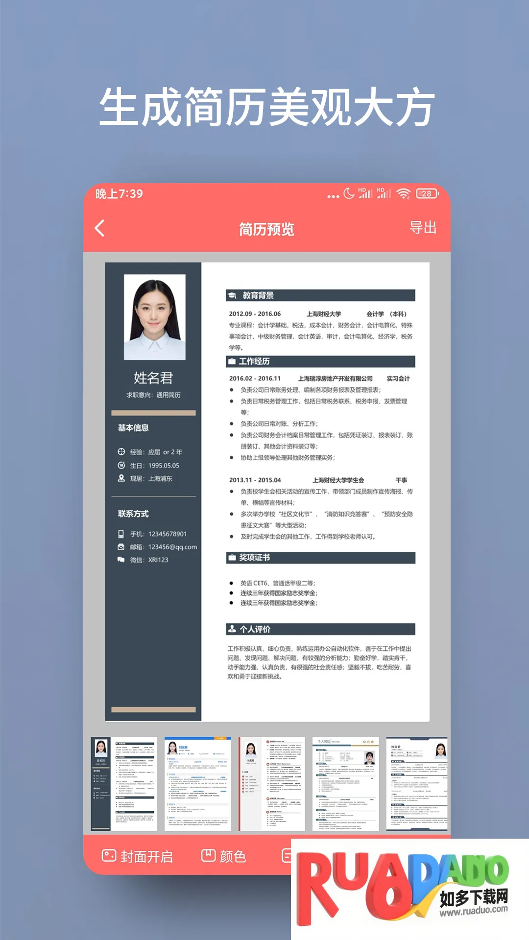 1. 拥有丰富精美的简历模板样式,直接选择就能生成符合个人需求的简历文档。