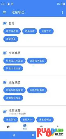 它的功能超强大,提供超百款各式各样的准星,可自由调整准星的颜色、大小、形状以及在屏幕中的位置,甚至还能发布自己设计的准星和其他玩家分享。还支持一键启动游戏,添加游戏快捷方式后,轻轻一按就能启动游戏并激活准星功能,省时又省心。而且它仅是安卓悬浮窗基础功能,不读取、解析或存储其他软件游戏的数据,安全无忧,让你放心操作。不管你是新手还是老玩家,准星精灵大师都能帮你更好地享受射击游戏的乐趣,赶紧试试吧!