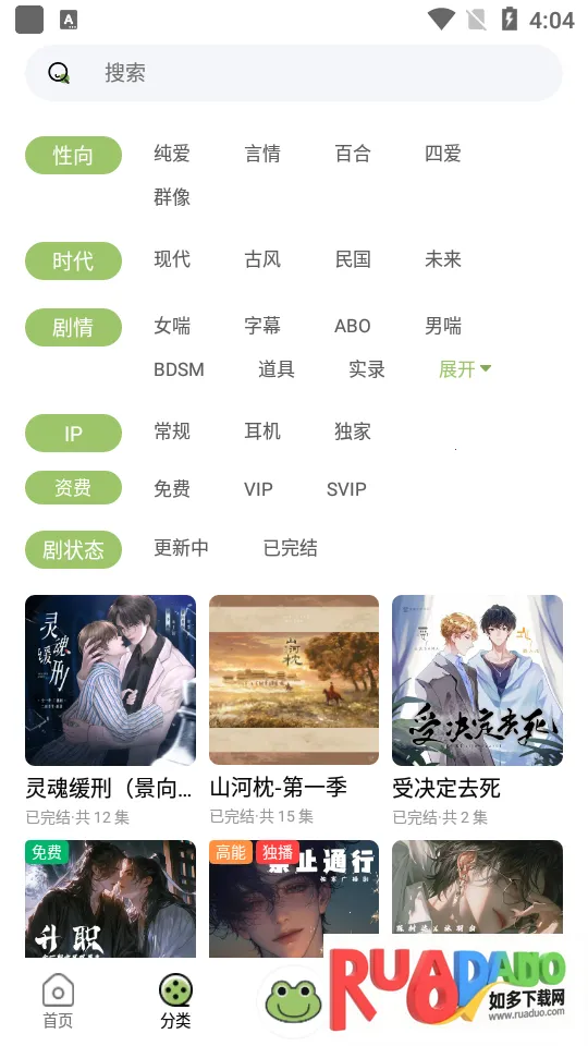 2. 分类体系精细,按题材、性向、时代等多维度设置标签,支持精准筛选。