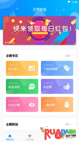 想让 QQ 名片和空间动态点赞数飙升吗?“qq 互赞资料卡”相关工具就能帮你实现!它能让 QQ 用户轻松互赞刷赞。软件体积小还安全,输入 QQ 号就能免费获取点赞数。功能超实用,可手动添加 QQ 号扩展互赞圈,每天最多加 50 个;自动点赞功能可指定号码高效获赞。亮点多多,全自动点赞省时间,自动赞别人能吸引回赞,添加长期好友刷赞效果更显著,还有 QQ 群赞助手。优势明显,只用于互赞刷赞保证体验,非好友也能互动拓展社交圈,操作简便,省去手动点击麻烦。使用时,打开应用输入获赞 QQ 号,选好点赞数量,等自动完成就行。记得开启无障碍辅助和弹窗权限,设置点赞次数,手动打开回赞页面,就能轻松享受点赞便利啦!