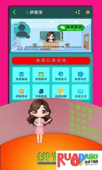 拼音宝 2026 官方最新版本专为 0 - 6 岁宝宝设计,紧扣大纲,含 83 节课程。有情景教学、AI 识别等模式,专业老师示范发音书写,通过闯关巩固知识,还能在线查字词成语,助力宝宝轻松学拼音。