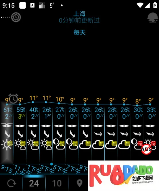 1. 逐时预报,能实时掌握24小时天气变化,提前预防当天温差。