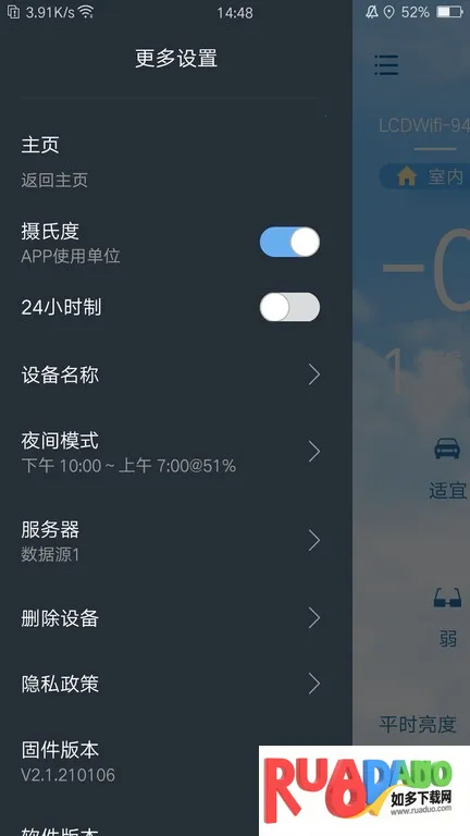 3. 可随时查询天气,实时查看室内室外温度变化,以及湿度、质量、气温变化等服务。